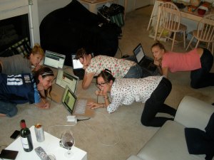 We did it! I had half a league over to my place for an online draft. Each girl brought a laptop, vino, and a thirst for the unknown, and embarked on her very first fantasy football draft. We had 14 brave souls sign up, so our slogan quickly was established as, “Girls Guide Camp takes it to 14.” (Eat me, Spinal Tap!) We had half the team spread across the country and they mostly checked in via video chat. (We’re so five years ago, we can’t stand it!) Everyone did a great job! (No, we don’t allow auto-draft, even in our newbie league. Yes, we smack talk when Beansie drafts all dorks and delinquents.) We seemed to have some drafting patterns: Jen got the Pierres, Beansie’s RB’s are both Moss, Laurie went for the Jacksons, Courtney’s sponsoring the Cowboys, Saints, and Vikings, etc.