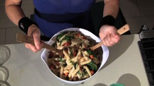 Cook pasta, drain. Combine with all other ingredients and TOSS! (One of my favorite activities is making fun of my mother’s NY accent. “Toss” is one of her best. She pronounces is like the number 2, plus “us.” TWO-US!