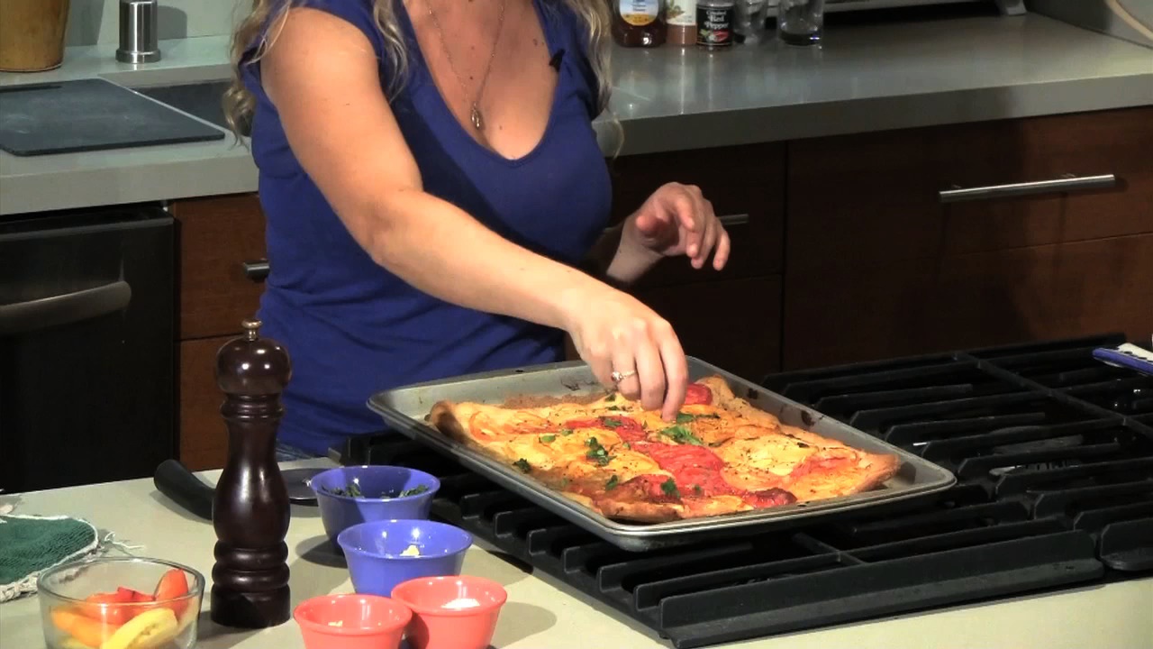 Bake for 20-25 minutes until pizza crust is golden and tomatoes are slightly shriveled.