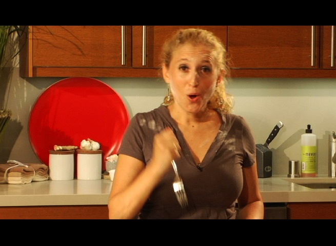 When you’re ready to use the dough, unwrap it and place it on a lightly floured surface. Flour your rolling pin. (You can use a Cabernet shaped wine bottle too!) Roll from center outward, turn disk and repeat until you have a round, flat, even, pie crust.