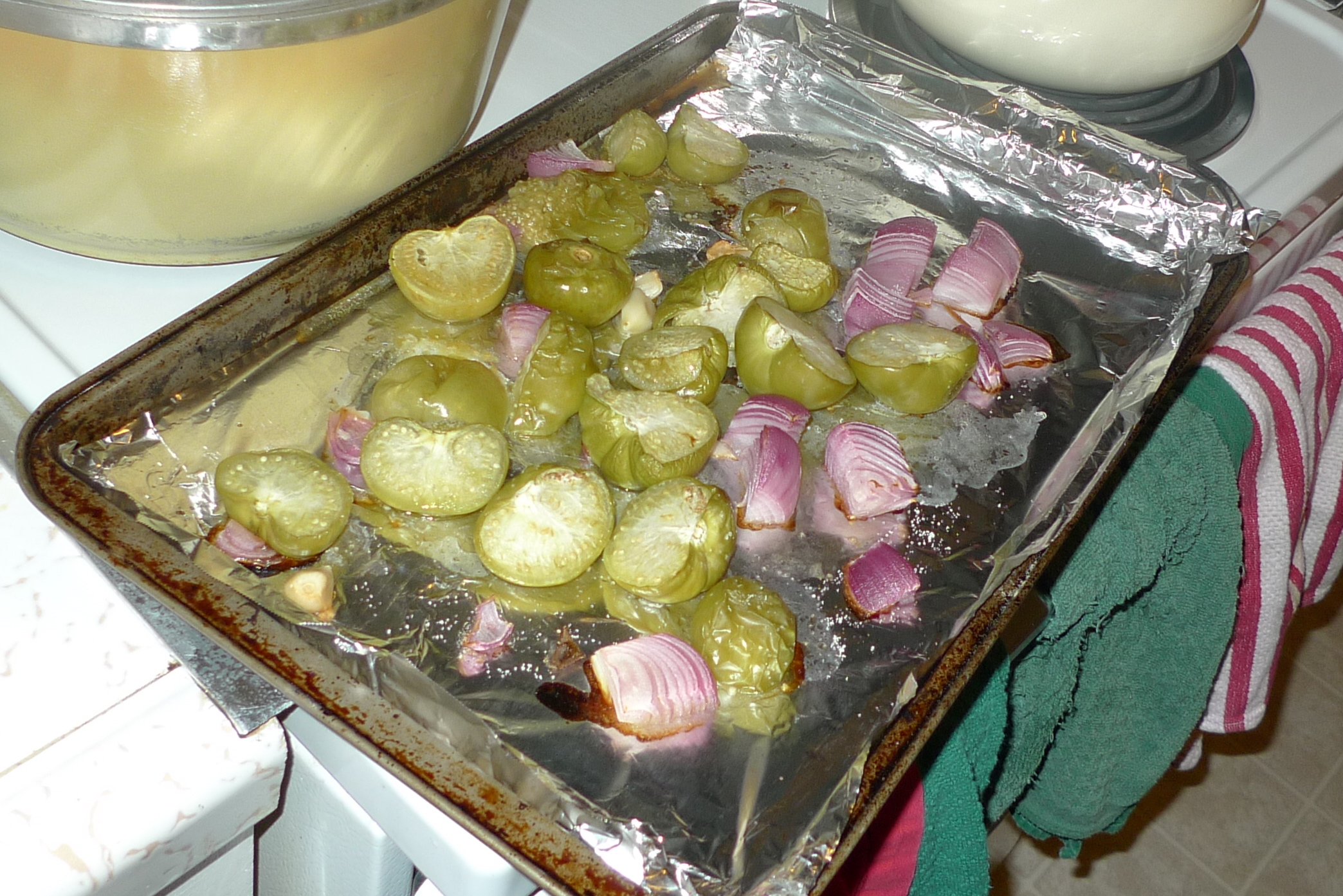 Roast tomatillos, onions, and garlic at 425 for 20 min.