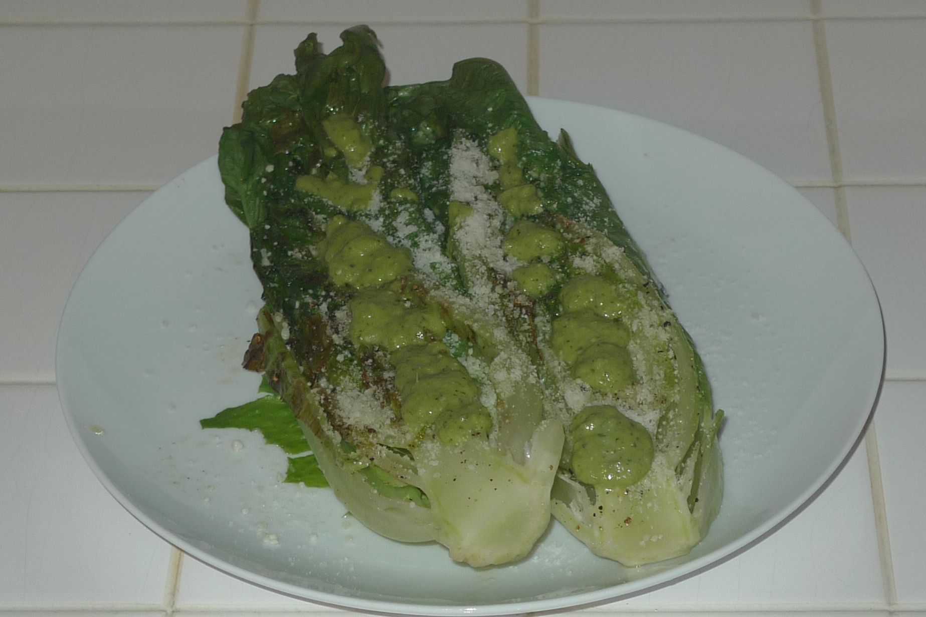 Cut each romaine heart lengthwise. SWOOPS* the cut side.