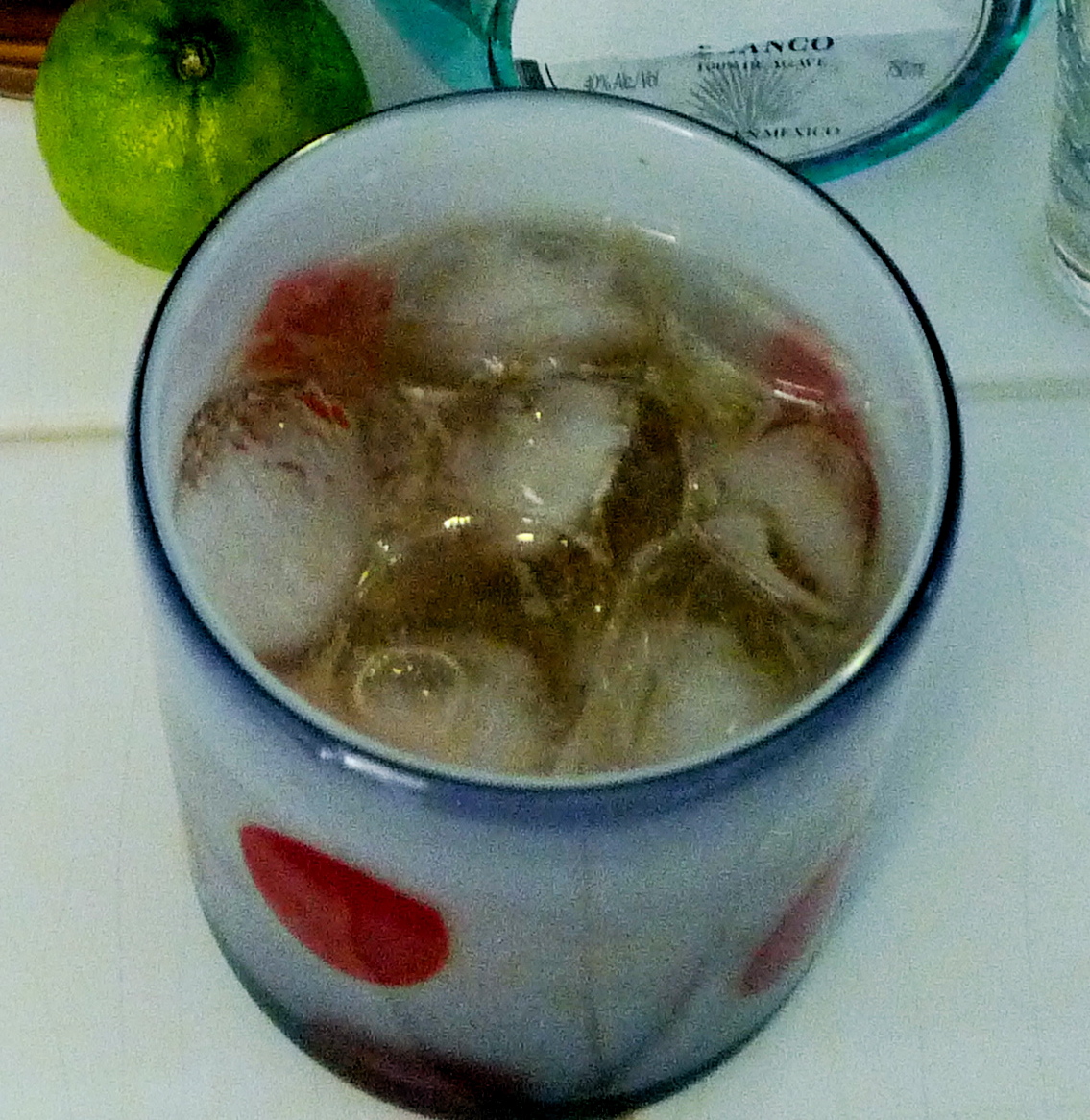 * To make the woody water, boil 1 c water, ½ c sugar, 4 sprigs rosemary, 4 sprigs thyme, 4 sprigs oregano, and 4 sage leaves in a pot. Simmer for 2-4 min. Strain and cool.